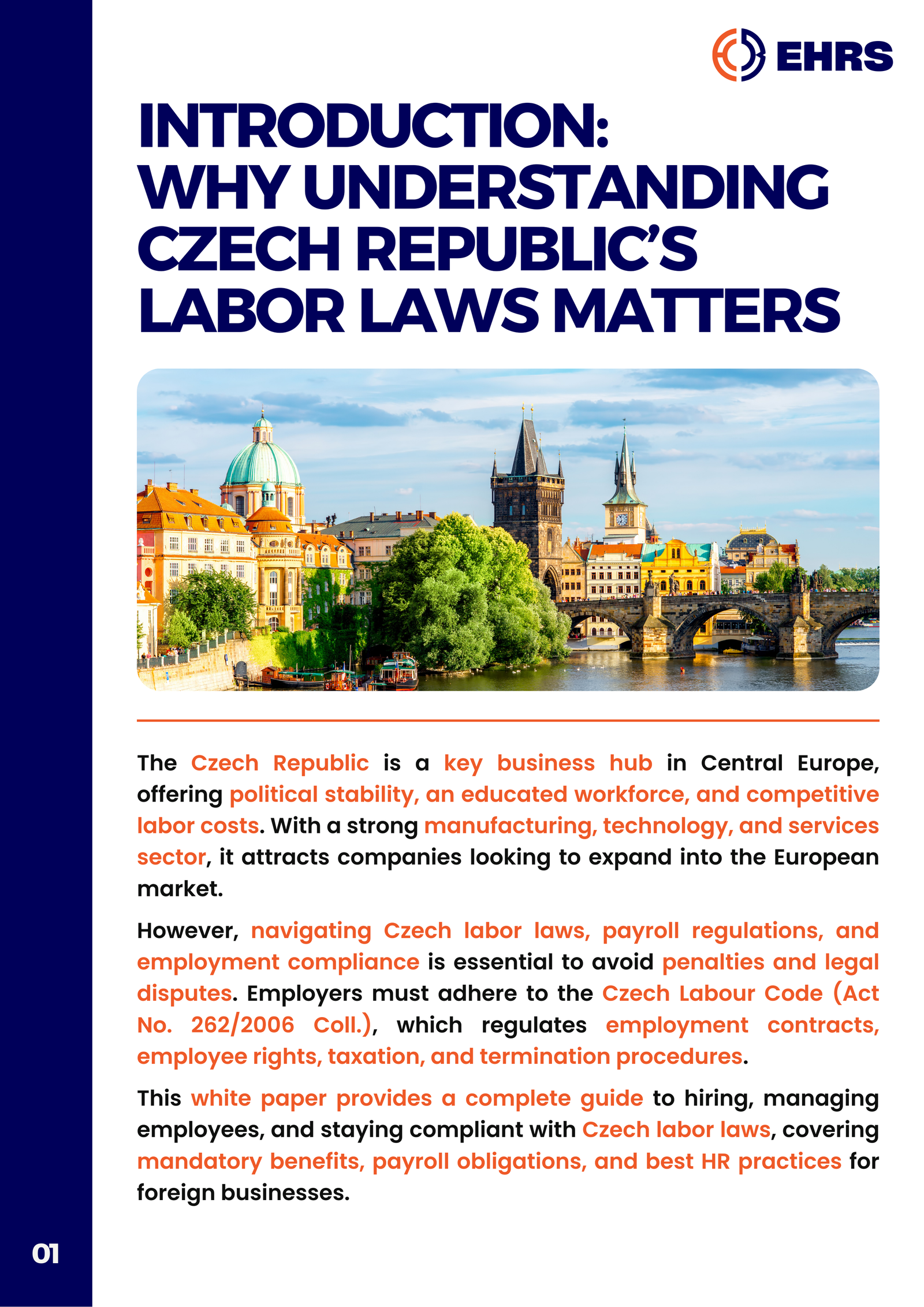 However, HR operations in the Czech Republic can pose challenges for U.S. and UK businesses unfamiliar with local labor laws, social insurance obligations, and language-based documentation requirements. Czech labor regulations are detailed, especially in areas like contract terms, terminations, and working time policies. Building an in-house HR team can be costly and complex. Outsourcing HR to a trusted compliance partner allows companies to streamline market entry, ensuring that contracts, payroll, and employee records are fully aligned with Czech and EU legal standards from day one.